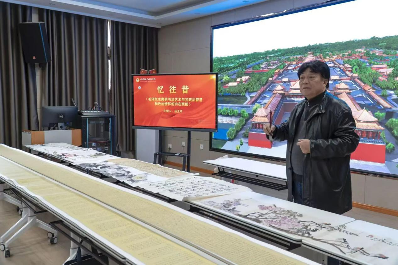 近日,信阳职业技术学院旅游学院举办专题讲座,中国书协会员、浉河书画院院长吕玉中(字荻白,号谿蕙斋主)主讲 “毛泽东主席的书法艺术与其政治智慧和政治情怀的内在联姻”,为师生呈现了一场跨越艺术与历史的文化盛宴。